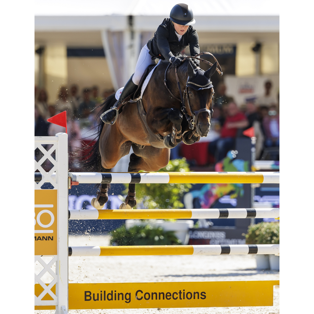"German female rider wi champion with young Emilia Löser. Winner of CSI 1m55 at only 9 years old. Born from the successful cross between Qlassic Bois Margot and Quaprice Bois Margot. Full brother to the phenomenal Hitchcock Bois Margot and J'Accuse Bois Margot."