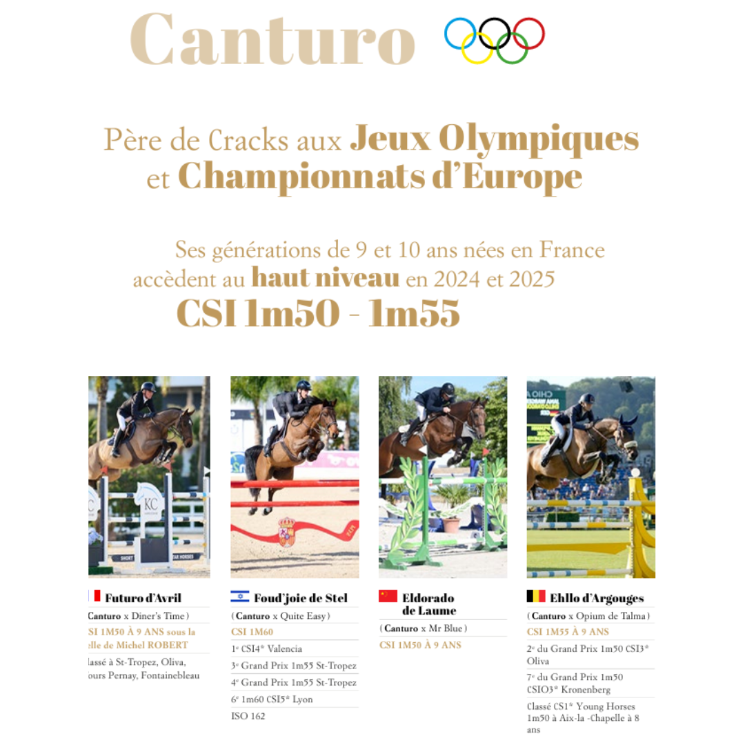 " Grand Vainqueur International et Jeux Olympiques. Père du crack Good Luck, Double médaillé aux Championnats d’Europe et de la jument olympique Zypria S, Jeux Olympiques de Tokyo. "