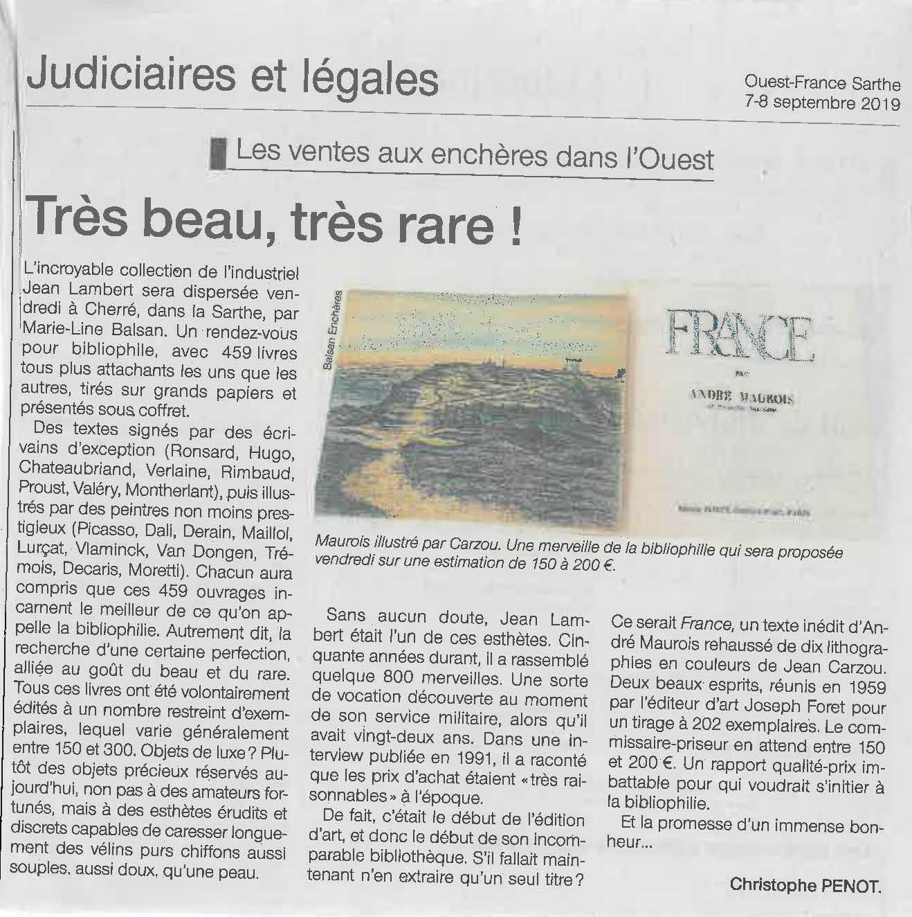 La vente de la collection Jean Lambert, samedi, à Cherré (Sarthe), a été un succès. Preuve qu'il reste toujours des bibliophiles.