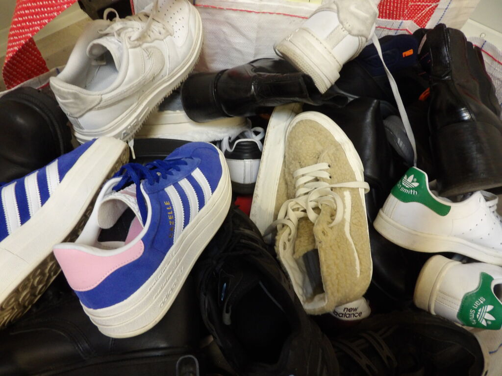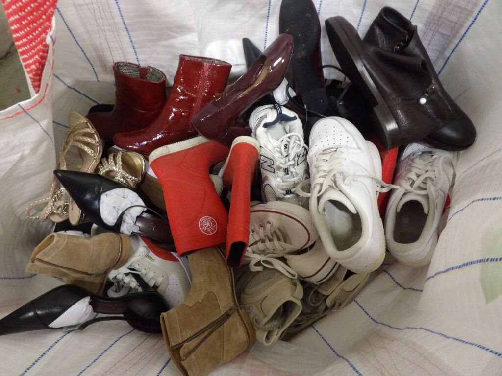 1/2 Palette de 65 paires de chaussures d'occasion, certaines neuves : Homme, Femme et enfant (divers gammes et marques ....)