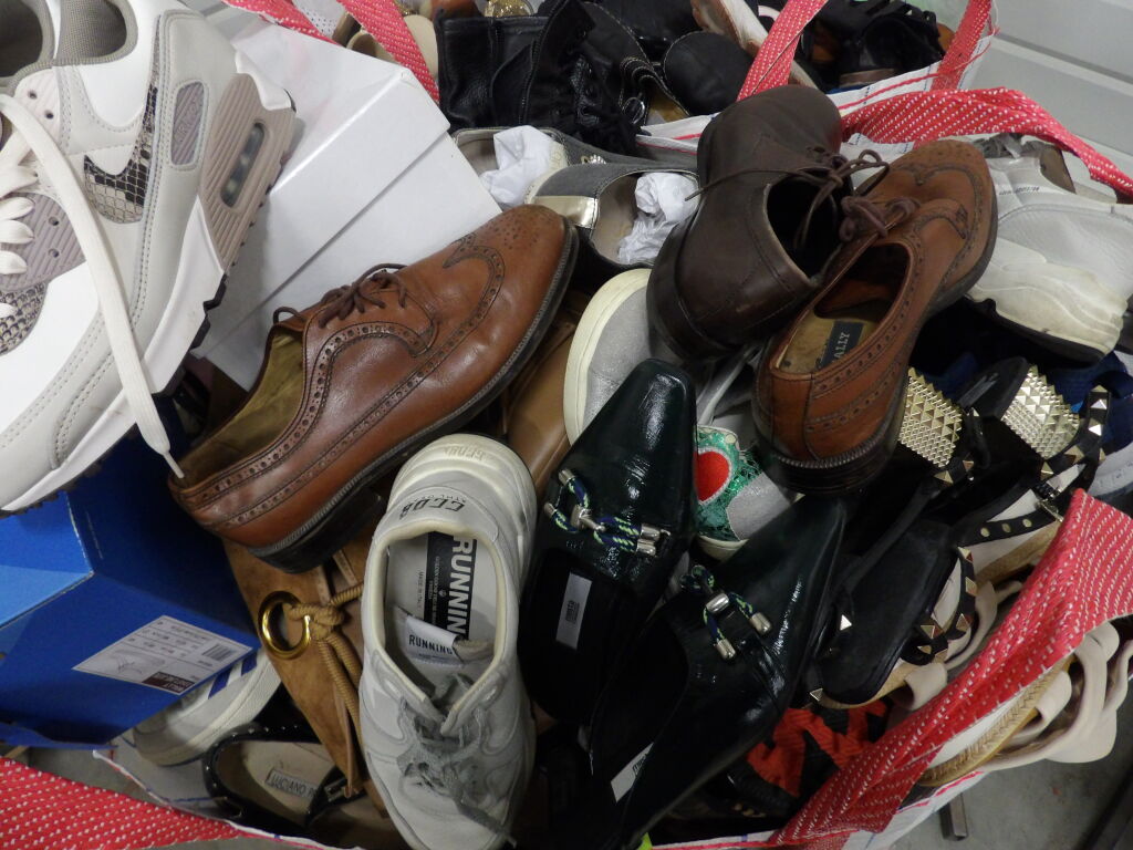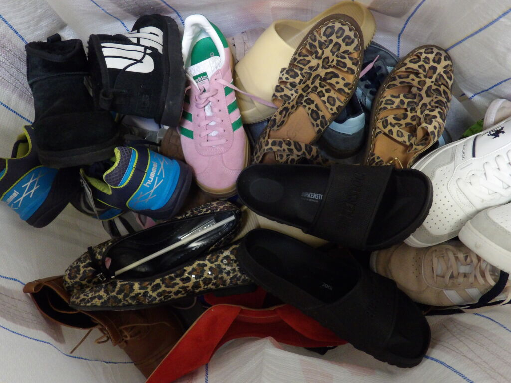 1/2 Palette de 80 paires de chaussures d'occasion, certaines neuves : Homme, Femme et enfant (divers gammes et marques ....)