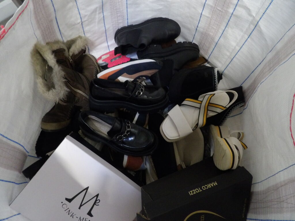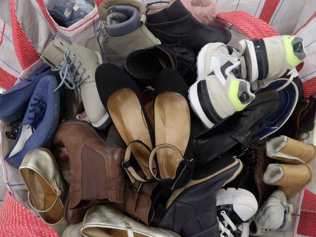 1/2 Palette de 80 paires de chaussures d'occasion, certaines neuves : Homme, Femme et enfant (divers gammes et marques ....)