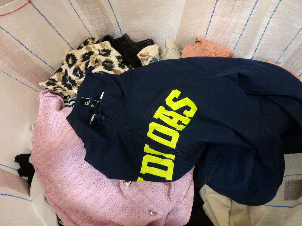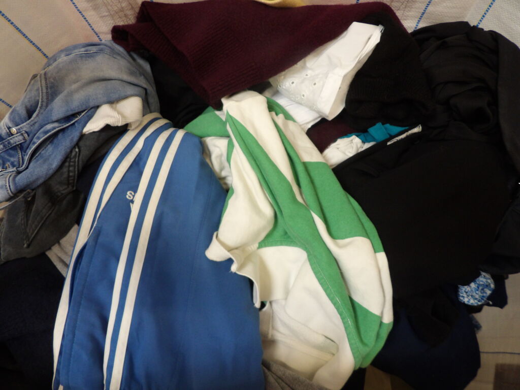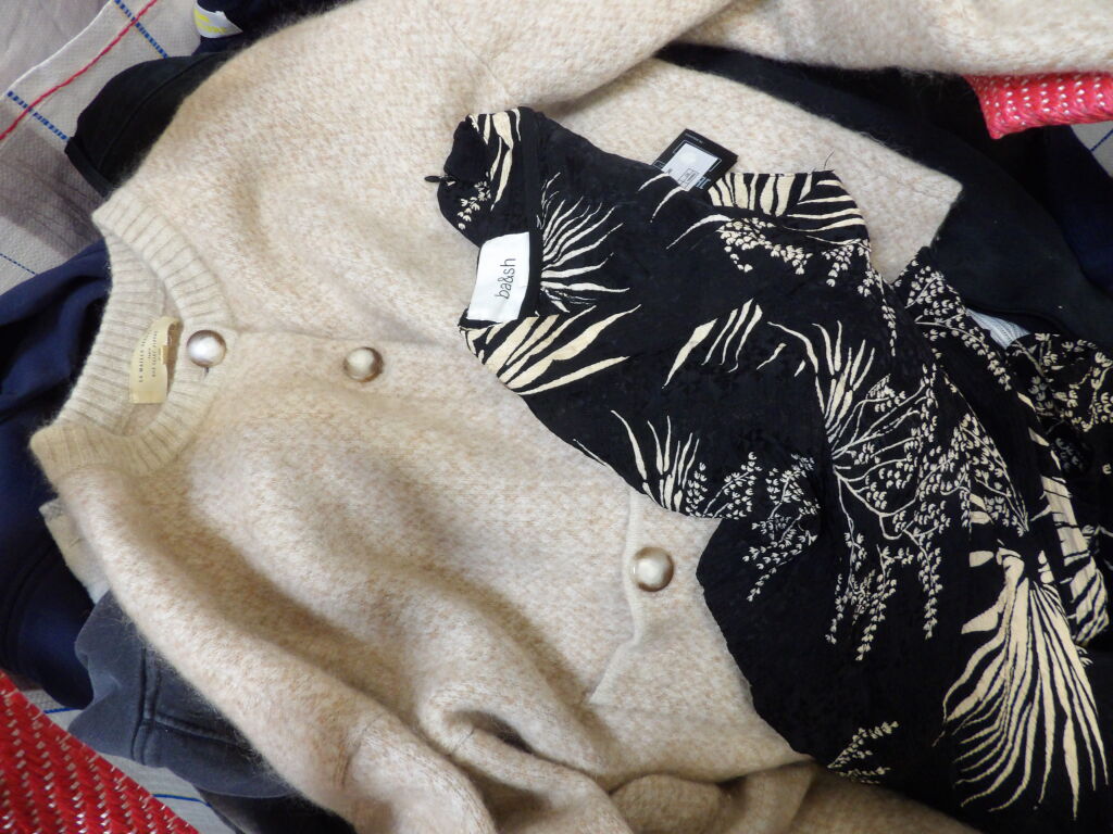 1/2 palette de 85 pièces de vêtements d'occasion et certains neufs : Femme, Enfant, Homme ( divers gammes et marques dont La Maille Sézanne - Ba&sh ...) - ATTENTION ce lot est d'occasion tous états et contient divers gammes donc de l'entrée type KIABI aussi. il n'est pas composé uniquement des marques citées.