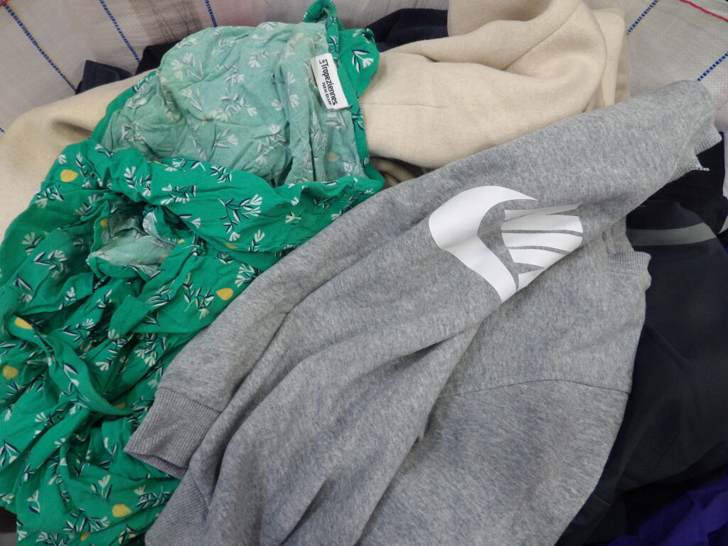 1/2 palette de 85 pièces de vêtements d'occasion et certains neufs : Femme, Enfant, Homme ( divers gammes et marques dont La petite etoile - Sézanne ...) - ATTENTION ce lot est d'occasion tous états et contient divers gammes donc de l'entrée type KIABI aussi. il n'est pas composé uniquement des marques citées.
