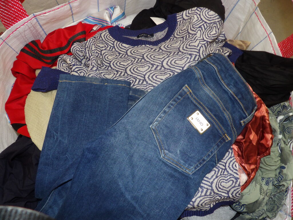 1/2 palette de 85 pièces de vêtements d'occasion et certains neufs : Femme, Enfant, Homme ( divers gammes et marques dont Liu.Jo - Soeur...) - ATTENTION ce lot est d'occasion tous états et contient divers gammes donc de l'entrée type KIABI aussi. il n'est pas composé uniquement des marques citées.