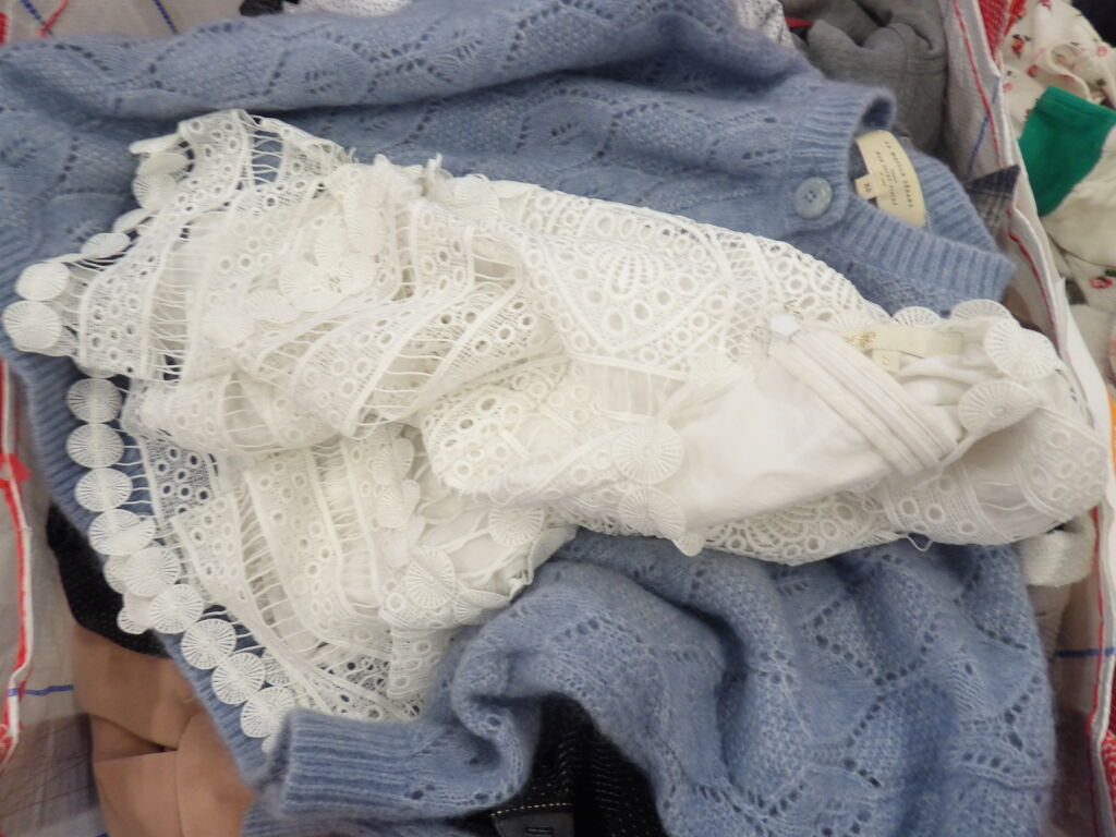1/2 palette de 85 pièces de vêtements d'occasion et certains neufs : Femme, Enfant, Homme ( divers gammes et marques dont Maje, Sézane...) - ATTENTION ce lot est d'occasion tous états et contient divers gammes donc de l'entrée type KIABI aussi. il n'est pas composé uniquement des marques citées.