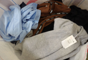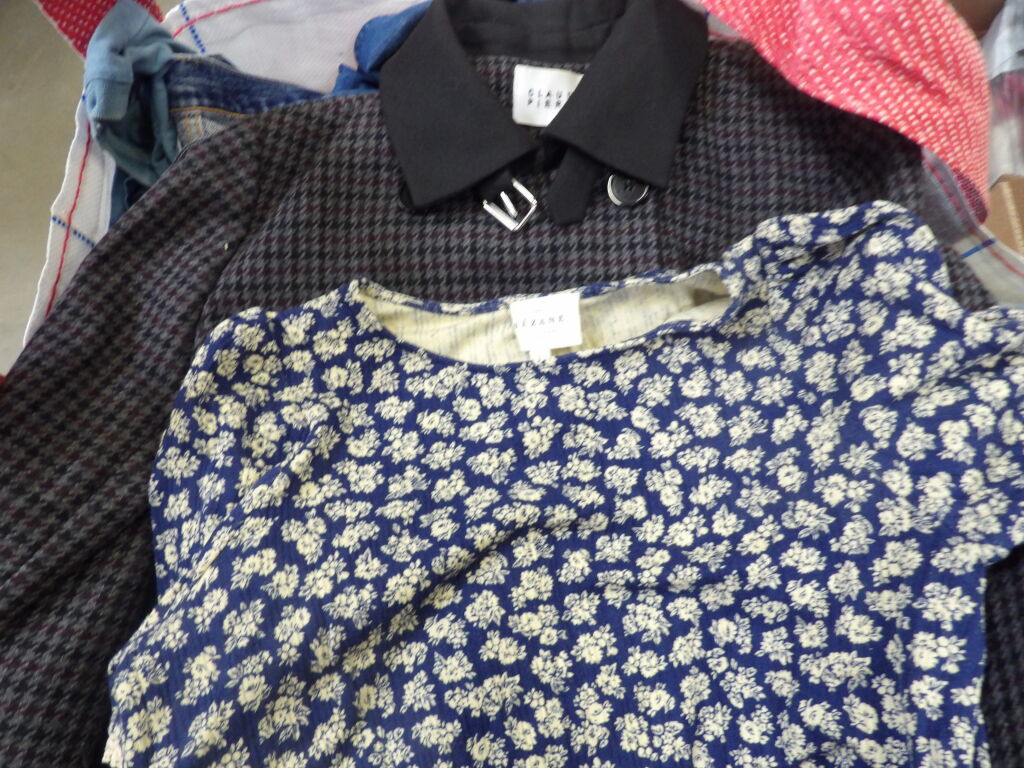 1/2 palette de 85 pièces de vêtements d'occasion et certains neufs : Femme, Enfant, Homme ( divers gammes et marques dont Sézanne - Claudie Pierlot...) - ATTENTION ce lot est d'occasion tous états et contient divers gammes donc de l'entrée type KIABI aussi. il n'est pas composé uniquement des marques citées.