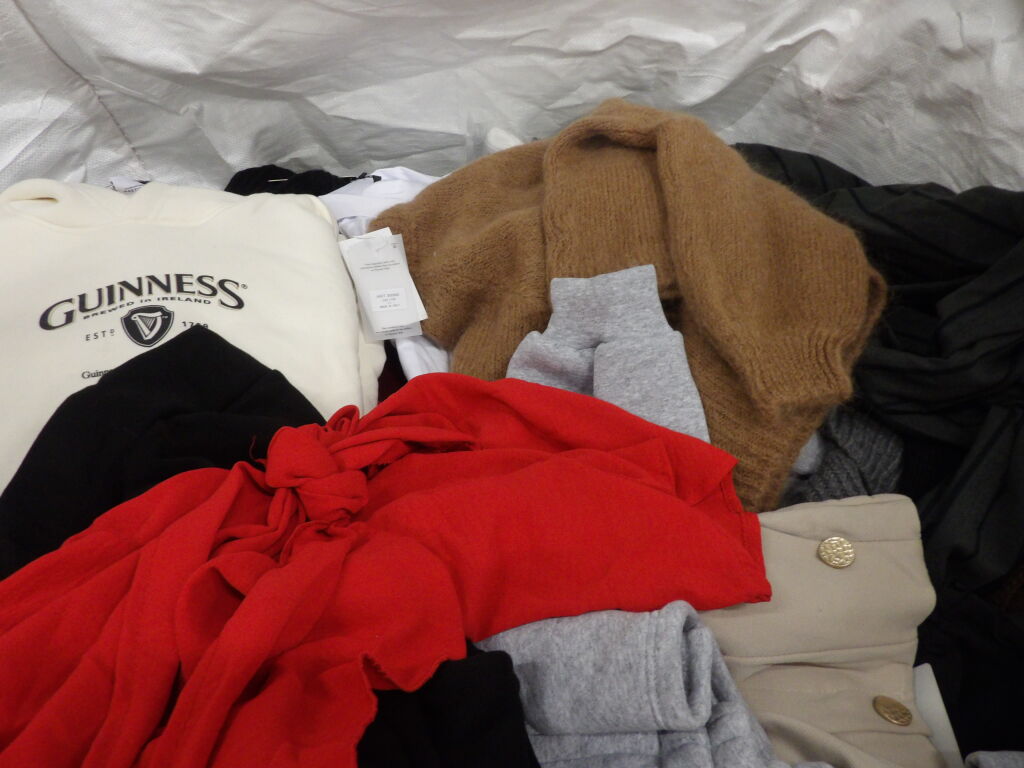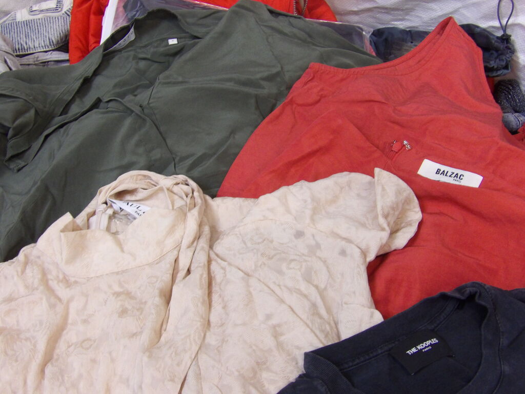Palette de 200 pièces de vêtements d'occasion et certains neufs : Femme, Enfant, Homme ( divers gammes et marques dont Sandro - Balzac - The Kooples...) - ATTENTION ce lot est d'occasion tous états et contient divers gammes donc de l'entrée type KIABI aussi. il n'est pas composé uniquement des marques citées.