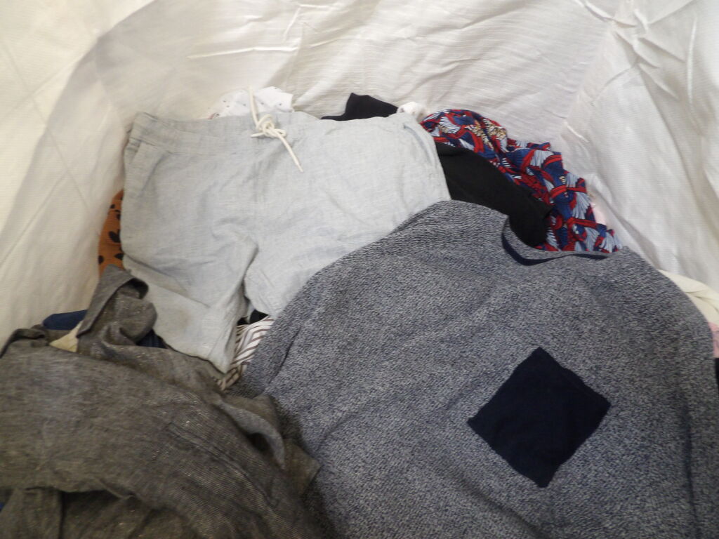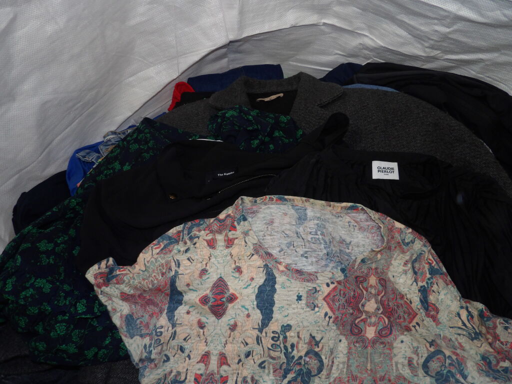 Palette de 200 pièces de vêtements d'occasion et certains neufs : Femme, Enfant, Homme ( divers gammes et marques dont Sandro, La Petite Etoile - The Kooples...) - ATTENTION ce lot est d'occasion tous états et contient divers gammes donc de l'entrée type KIABI aussi. il n'est pas composé uniquement des marques citées.