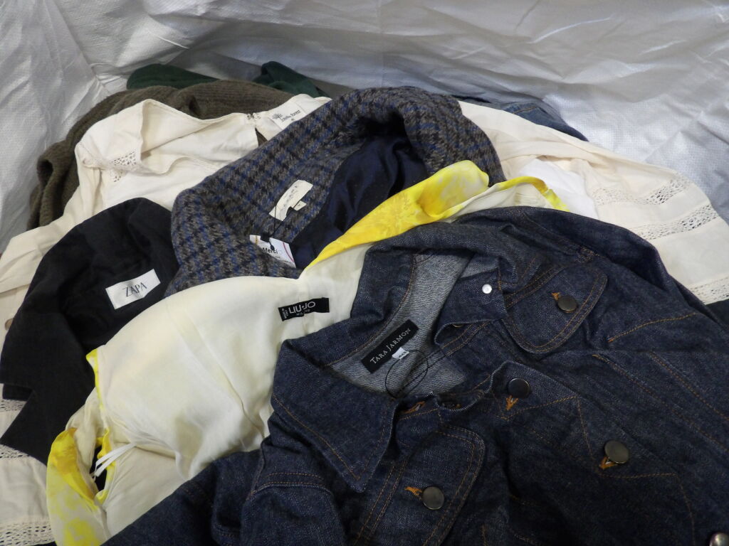 Palette de 200 pièces de vêtements d'occasion et certains neufs : Femme, Enfant, Homme ( divers gammes et marques dont Sezanne - Istella forest - Liu jo..) - ATTENTION ce lot est d'occasion tous états et contient divers gammes donc de l'entrée type KIABI aussi. il n'est pas composé uniquement des marques citées.