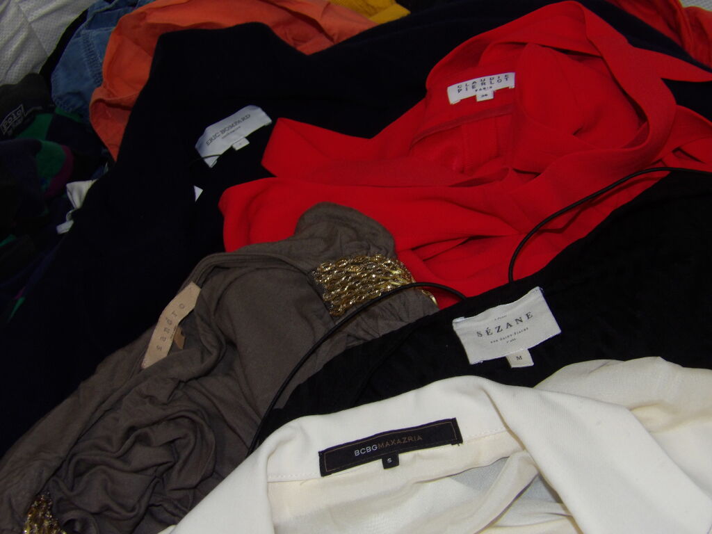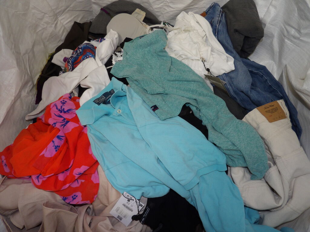 Palette de 200 pièces de vêtements d'occasion et certains neufs : Femme, Enfant, Homme ( divers gammes et marques dont Sezanne - Sandro - Claudie pierlot..) - ATTENTION ce lot est d'occasion tous états et contient divers gammes donc de l'entrée type KIABI aussi. il n'est pas composé uniquement des marques citées.