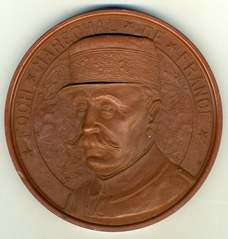 1ere Guerre Mondiale - Rare médaille de table ronde 120 mm - FOCH MARECHAL DE FRANCE - Buste profil à gauche, sculpture de GUENARDEAU, 1919 - SUP.