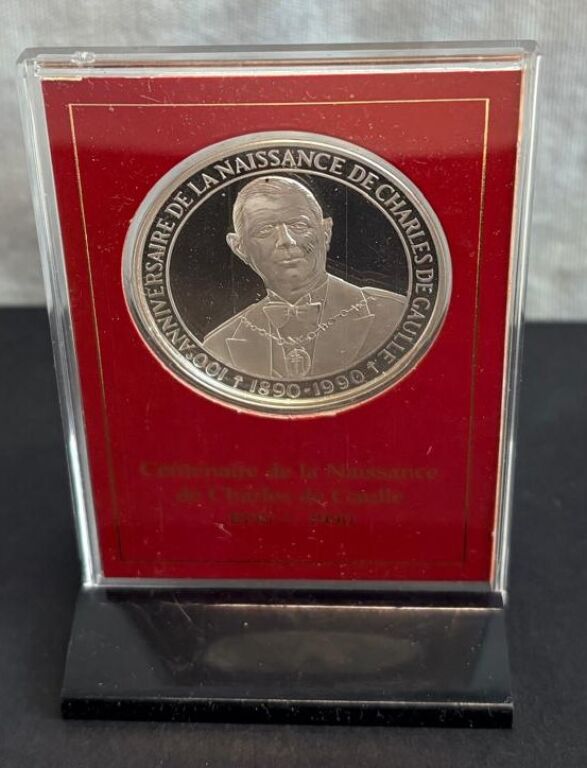 ARGENT - "CENTENAIRE de la NAISSANCE de CHARLES de GAULLE 1890-1990 " et " 50e ANNIVERSAIRE de L' APPEL de 18 JUIN 1940 BBC : LONDRES ".
