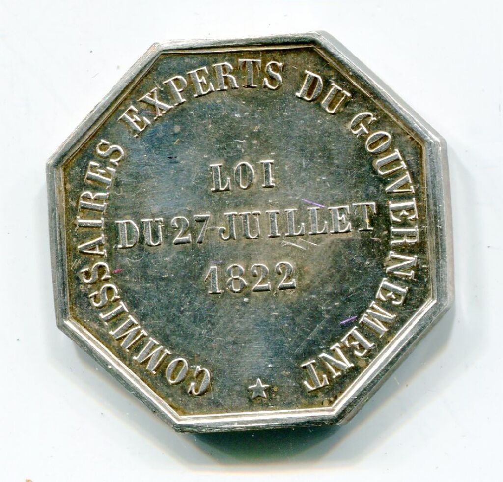 ARGENT - "COMMISSAIRES EXPERTS du GOUVERNEMENT, Loi du 27 juillet 1822".