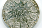 ARGENT - MEDAILLE EUROPA - Douze étoiles et douze blasons représentatifs des douze pays de l' Europe en 1990 - Revers : FRANCE 1990, représentation de la France debout sur carte de l'Europe, elle tient une colombe ailes déployées de la main droite, une branche d'olivier de la gauche ; également colombes en vol dans le champ.