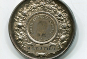 ARGENT - " SOCIETE HORTICOLE du LOIRET ", médaille classe argent en argent. Ecu de ville couronné entre deux palmes de laurier et chêne - Revers, couronne de fruits, fleurs et céréales, attribution en centre : M.G. TRUTTEAU 1882 - signé Desaïde. - Poinçons argent et corne - 41,5 mm - 46,43 grammes - TTB