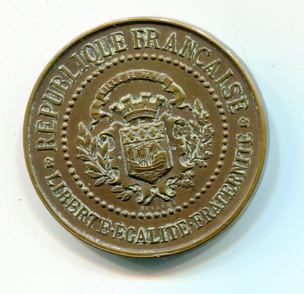 " ASSISTANCE PUBLIQUE de Paris / BUREAU de BIENFAISANCE - 3e arrondissement, BUREAU de BIENFAISANCE " - à l'avers " République Française - Liberté-Egalite-Fraternité", en centre blason couronné de la ville de Paris entre 2 palmes de chêne et laurier. Desaïde ed. - attribution par gravure : " Mr M.H. THILLOY COMMISSAIRE 1904 ".