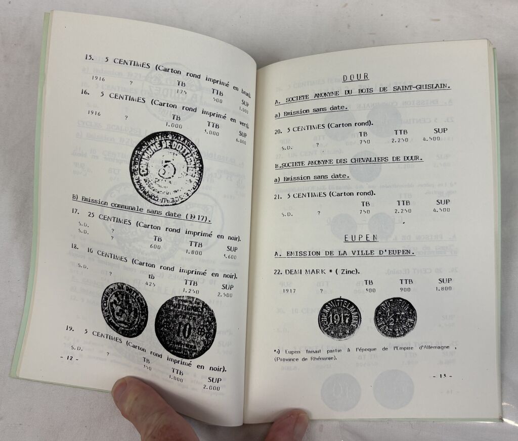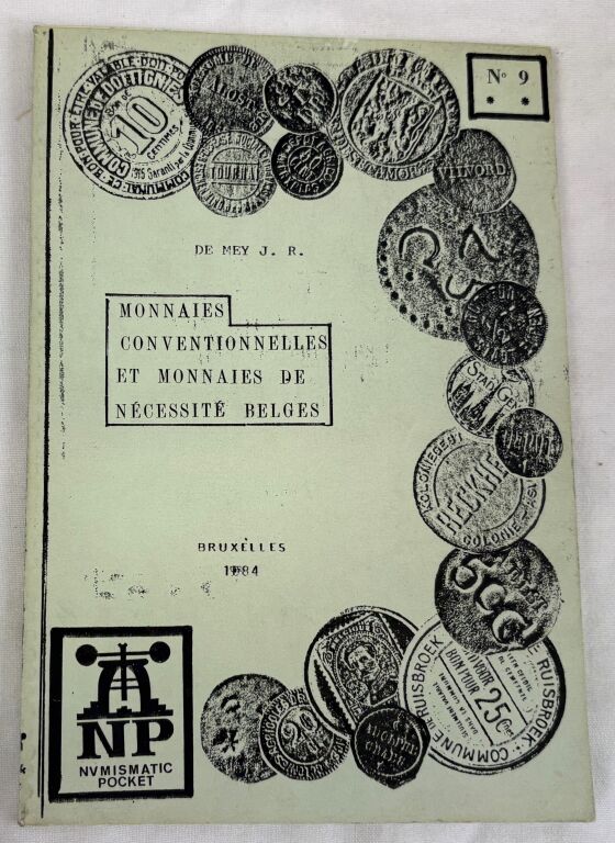 BIBLIOTHEQUE - "MONNAIES CONVENTIONNELLES et MONNAIES de NECESSITE BELGES 1815 à 1940 ", par Jean René de MEY 1984 - Répertoire et cote en francs belges. 53 pages 21 x 14,5 cm - avec reproduction des monnaies répertoriées.