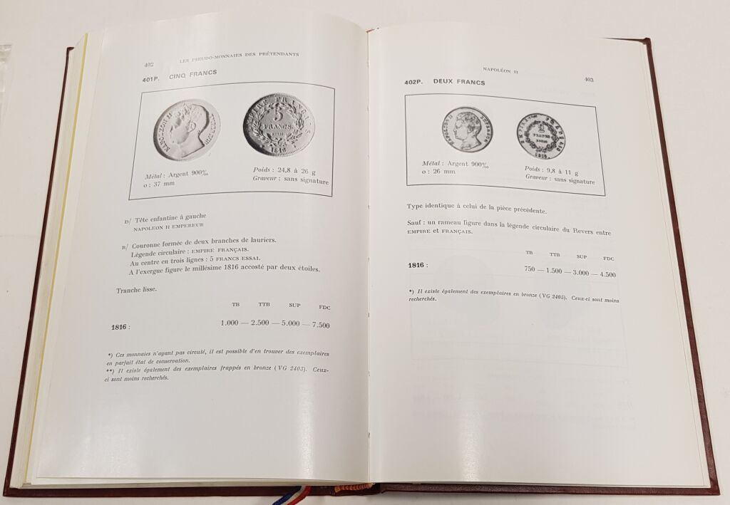 Ouvrage intéressant pour ses commentaires monétaires (histoire, faux répertoriés d' époque ou contemporains, notes diverses) - MAIS EGALEMENT pour son répertoire des MONNAIES de SIEGE lors de la période des révoltes de la Convention et son répertoire DES PSEUDO-MONNAIES des PRETENDANTS AU GOUVERNEMNT de la France qui frappèrent monnaies à l' usage de leurs partisans à titre de propagande : Napoléon II, Louis XVIII en exil à Gand, Henri V fils du Duc de Berry Duc de Bordeaux, Léon Gambetta, Adolphe Thiers, Mac Mahon, Général Boulanger, Napoléon IV ...