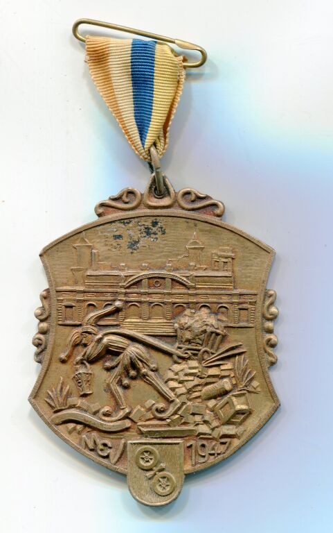 à 11 h 11 et met la ville sous le signe de la folie. " Helau " est le cri de ralliement de tous les fous... Les associations de carnaval furent dissoutes par le régime Nazi. Après la guerre le commandant français de la ville, Louis Théodore Kleinmann s'investit pour remettre sur pied le carnaval de Mayence. Cette médaille provient de la collection d'un militaire français en occupation 1945-1951.