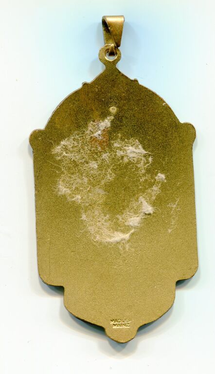 CARNAVAL de MAYENCE 1950 / ALLEMAGNE ( * )- Grande médaille / Insigne du comité - 82 x 45 mm - EMAIL GRAND FEU multicolore - en pourtour liseré tricolore, au fond quartier historique de Mayence, au milieu lampadaire, à droite carnavaleux en tenue de pierrot blanc en bas "DE ZUG KIMMT MCV (le train arrive) - Marquage fabricant au dos : MADLER MAINZ. - 35,05 grammes. - TTB