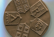 Vue des volcans, du Puy de Dôme et son relais hertzien, de vestiges historiques, lac. Revers : 5 blasons des principales villes du département - OEuvre d'Émile Rousseau. Sur la tranche poinçons bronze et corne & année frappe 1974. - 189,86 grammes- SUP