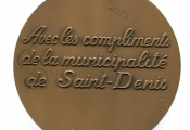 ILE de la REUNION - VILLE de SAINT DENIS - Médaille d' honneur de la ville, bronze ronde 72 mm - 165 grammes - OEuvre signée FIA Lyon ed - blason couronné de Saint Denis posé sur des palmes et ancre de marine. - Revers : "avec les compliments de la municipalité de St Denis.