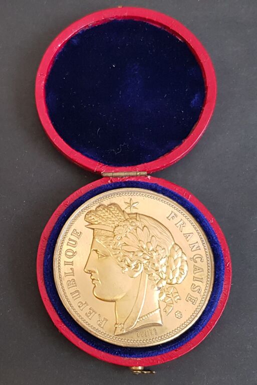 19e siècle - Médaille du 3e type, grand module de 50 mm, classe OR en ARGENT doré (vermeil).