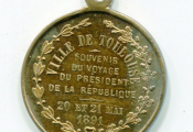 VILLE de TOULOUSE, CARNOT, Président de la République, SOUVENIR du VOYAGE, 20 et 21 mai 1891 - Buste 3/4 profil entouré de la légende, texte souvenir au revers entre 2 palmes.