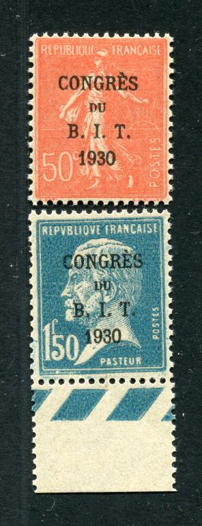 Timbres semeuse et Pasteur avec surcharge B.I.T. - n° 264 & 265 neufs **