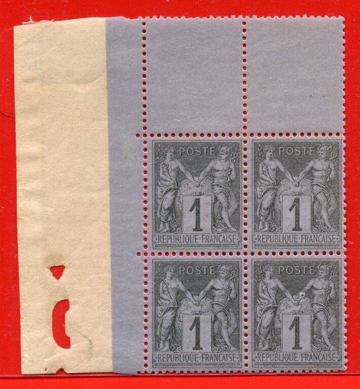 N° 83 - 1c noir sur azuré au type 2 - neufs **. (petit trou timbre 4).