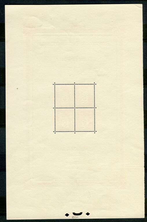 BLOC N° 1 - 4 timbres 5 F rouge Sage sur feuillet 219 x 140 mm dans un cadre avec inscriptions. - neuf ** signé Calvès.