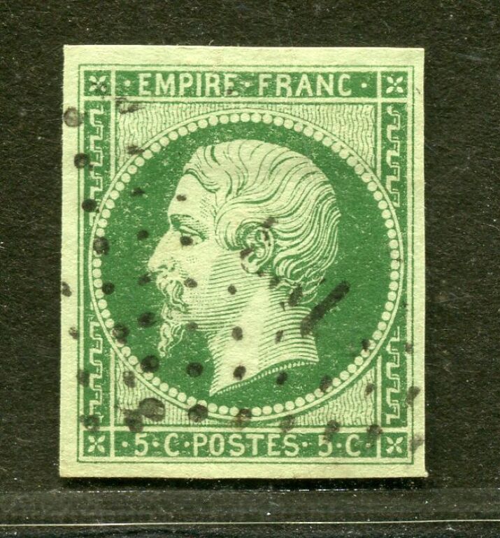 FRANCE - n° 12 b - 5c nuance vert foncé 2e EMPIRE, NAPOLEON III tête nue.