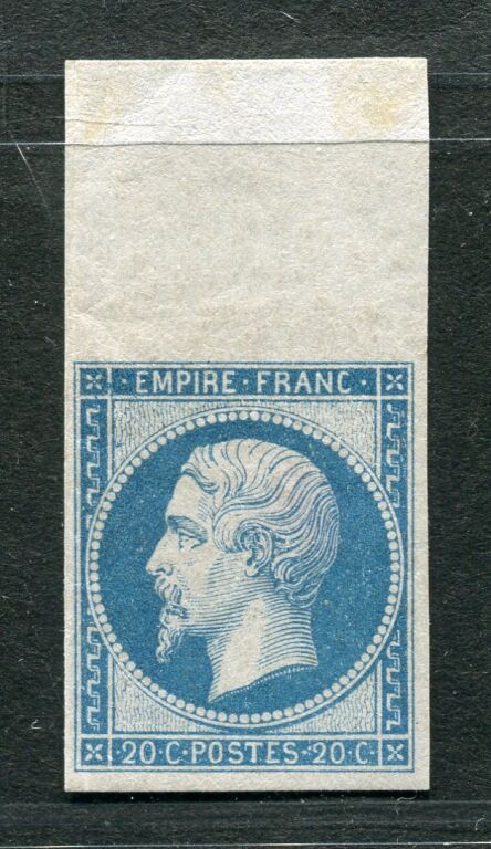 FRANCE - n° 14 B type II - 20c bleu foncé 2e EMPIRE, NAPOLEON III tête nue.