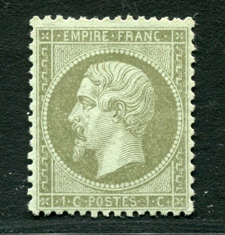 FRANCE - n° 19 - 1c vert olive 2e EMPIRE, NAPOLEON III tête nue Dentelé.