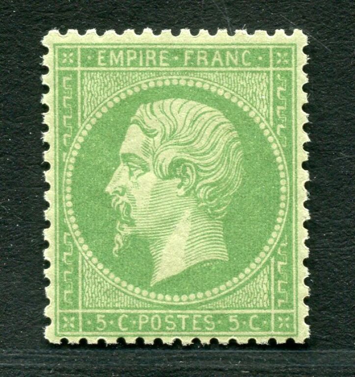 FRANCE - n° 20a - 5c vert foncé 2e EMPIRE, NAPOLEON III tête nue Dentelé.
