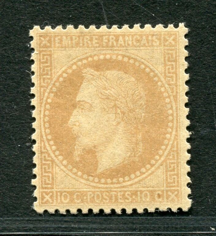FRANCE - n° 28 B - 10c bistre type II 2e EMPIRE, NAPOLEON III tête LAUREE dentelé.