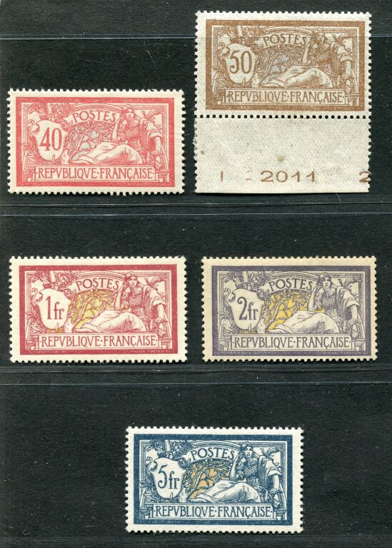série complète des 5 timbres 119 à 123 neufs ** - Le rare 2 F est signé Brun