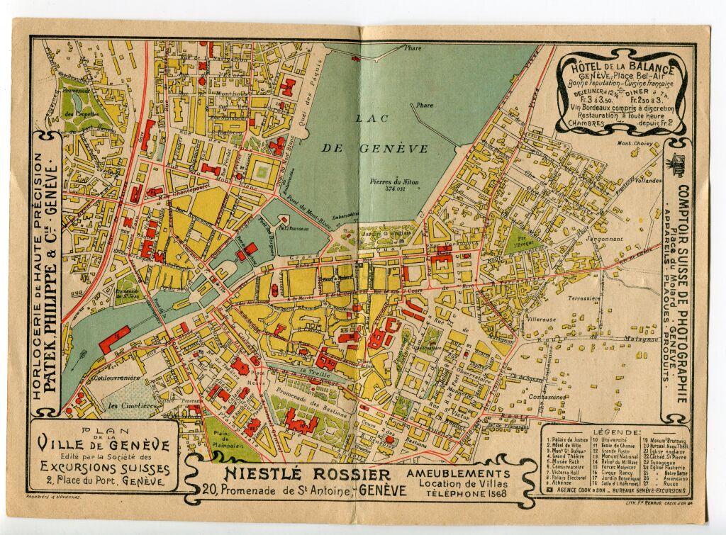 108 x 155 mm (dimensions fermé) - en centre double page, plan couleurs de GENEVE.