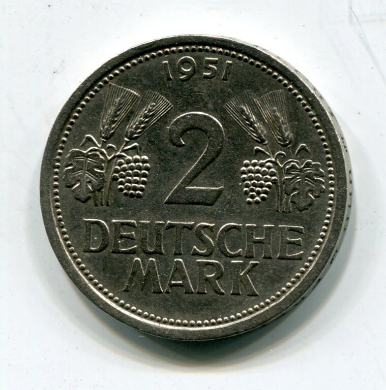 ALLEMAGNE FEDERALE - 2 MARK 1951 " aux grappes de raisin " atelier J, atelier de HAMBOURG - TTB + , seul millésime à ce type.