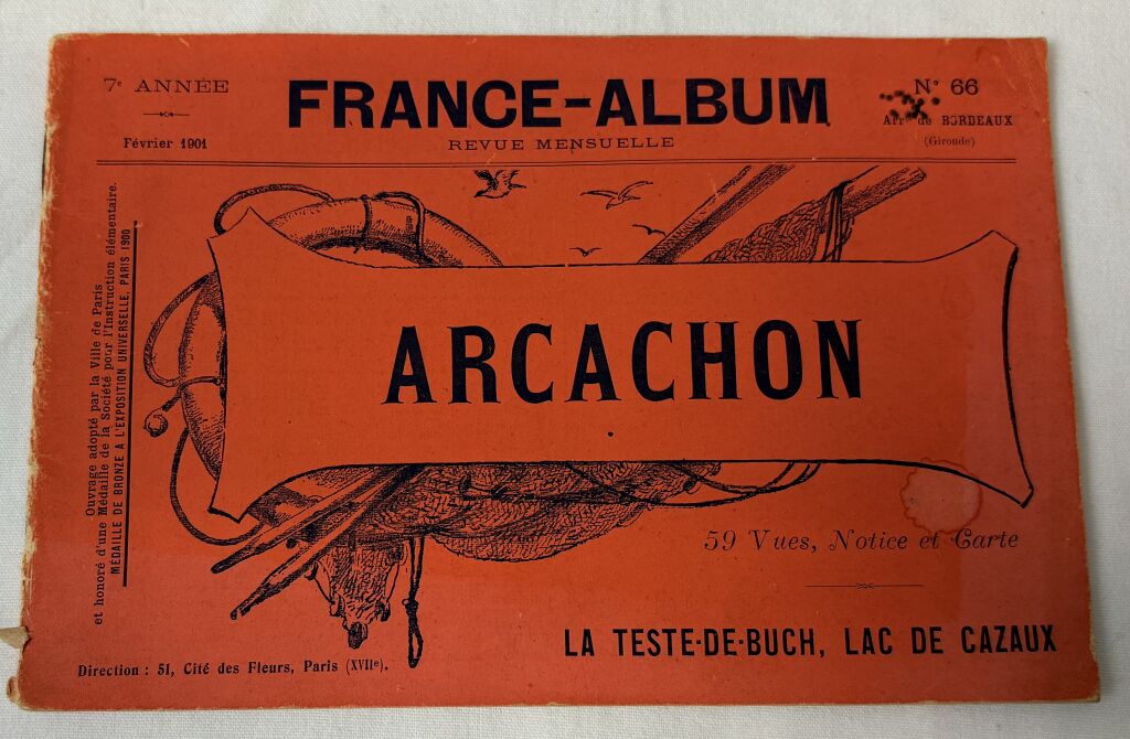 13,5 x 20,3 cm 59 vues générales, villas, plages, hôtels, la pêche, vie locale ...avec notices explicatives, cartographie, chemins de fer, publicités - édité par " France-Album " n° 66 "ouvrage adopté par la ville de Paris et honoré d'une médaille de la société pour l'instruction élémentaire, Médaille de bronze à l'exposition universelle Paris 1900 ".