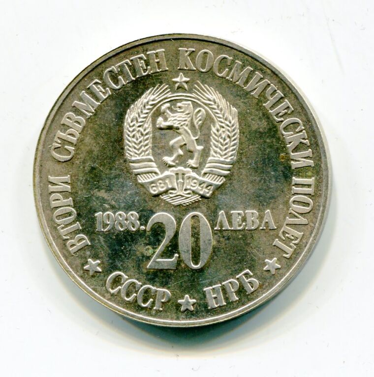 20 Leva 1988 commémorative - armoiries, revers les 3 cosmonautes flottant dans l'espace.
