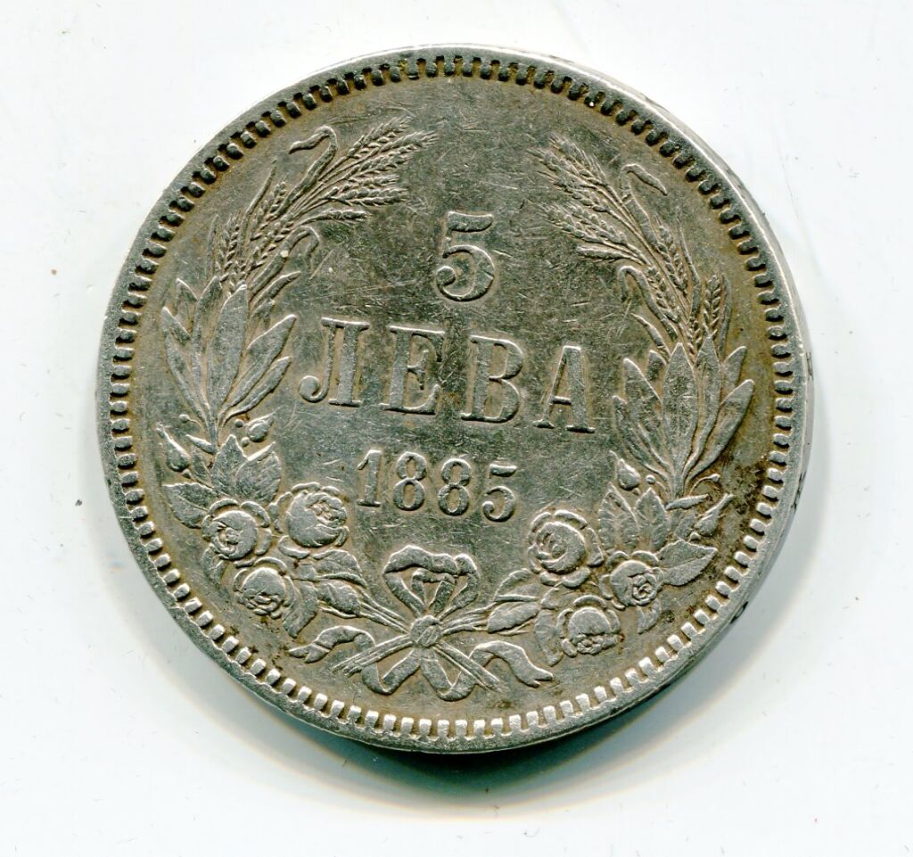 ARGENT - BULGARIE / UNION LATINE - ALEXANDRE 1er PRINCE sous la souveraineté turque - CINQ LEVA 1885 à la taille et au poids de la 5 francs armoiries princières.