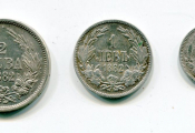 ARGENT - BULGARIE / UNION LATINE - ALEXANDRE 1er PRINCE sous la souveraineté turque - Collection des 3 monnaies armes princières sous un dai couronné soutenues par 2 lions : 50 stotinki 1883 TTB/SUP + un Lev 1882 TTB + 2 Leva 1882 SUP