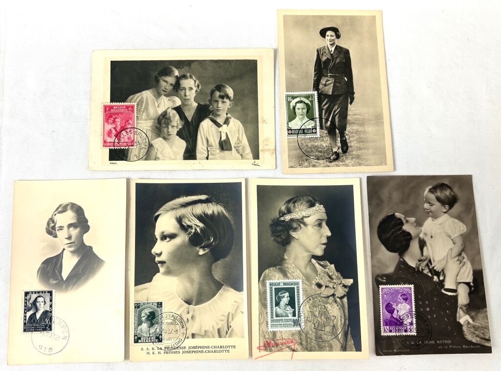 BELGIQUE - FAMILLE ROYALE, SIX CARTES MAXIMUM avec timbre oblitéré au recto :