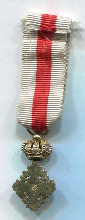 EN VERMEIL, belle fabrication ancienne croix couronnée (magnifique couronne ajourée), 4 branches émail grand feu rouge, Lion apposé en centre, couronne de lauriers en pourtour.