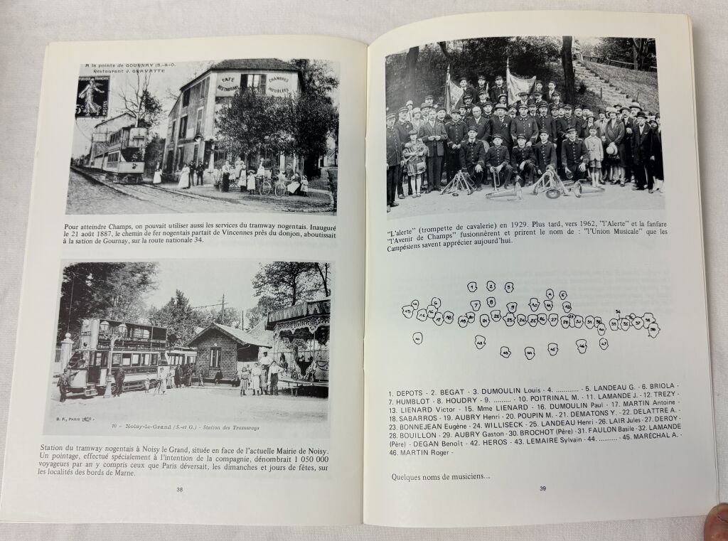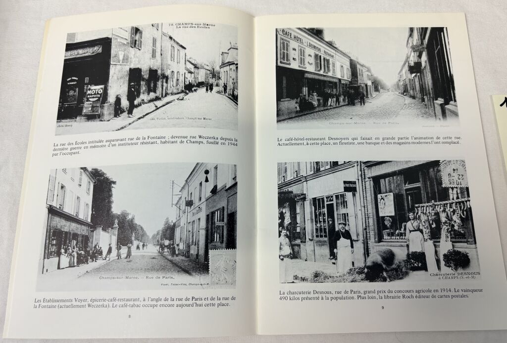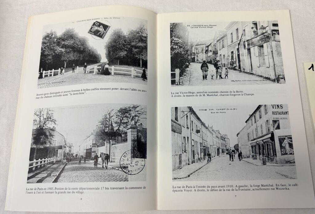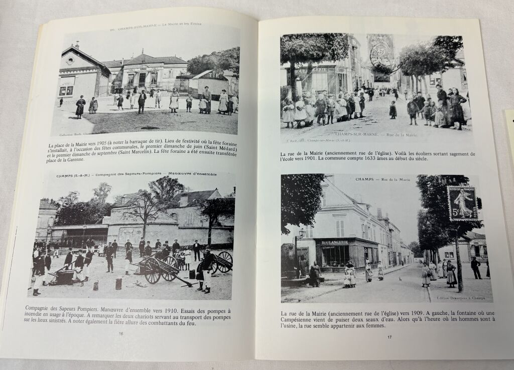 CHAMPS sur MARNE (77) - "A LA RECHERCHE de CHAMPS D'HIER " par JC Risch. Compte d'auteur 1980, 40 pages pour raconter par la carte postale commentée l'histoire d'un siècle. Paysages, château, population, commerces, église, écoles, gare, fanfare, guinguettes, fêtes etc... 24,5 x 17 cm.