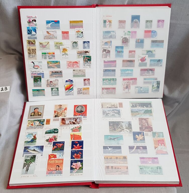 en 4 beaux classeurs neufs, environ 1 500 ( mille cinq cents ) timbres divers.