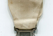 PREMIERE GUERRE MONDIALE mention 1914 / 1919 - Croix avec mentions SBM / 1914 et 1919, couronne de feuilles de chêne et laurier sur la croix - Ruban blanc, croix rouge brodée en centre. Au dos rayures verticales sur la croix légende : "société française de secours aux blessés militaires des armées de terre et de mer".