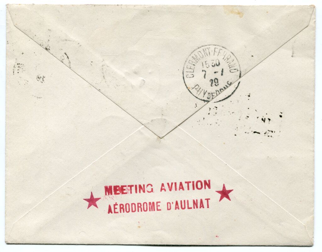 Au dos arrivée Clermont 7 juillet + griffe " Meeting Aviation aérodrome d'Aulnat ".